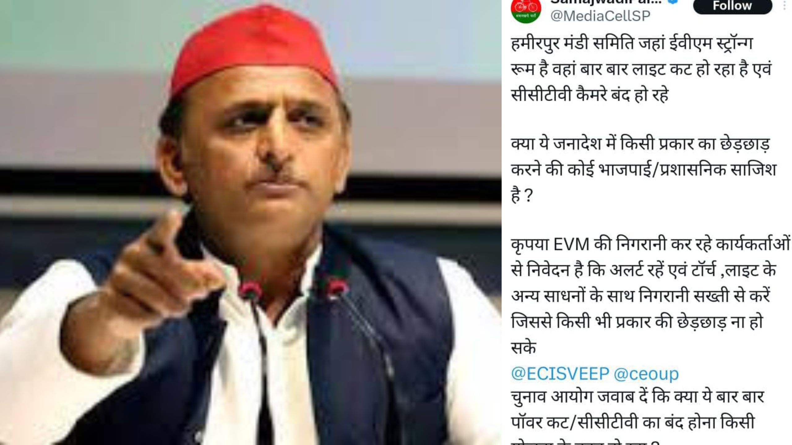 अखिलेश यादव ने X पर पोस्ट में लिखा ‘हमीरपुर में जहां चुनाव के बाद ईवीएम रखे हैं वहां के स्ट्रांग रूम में पांचवी बार बिजली कटी है। चुनाव आयोग और स्थानीय प्रशासन इसका तुरंत संज्ञान लें। सभी सपा प्रत्याशियों और जुझारू कार्यकर्ताओं से यही अपील है कि इसी तरह पूरे प्रदेश में ईवीएम के स्ट्रांग रूम पर निगाह रखें और गड़बड़ी की किसी भी आशंका की सूचना हमें दें। ‘