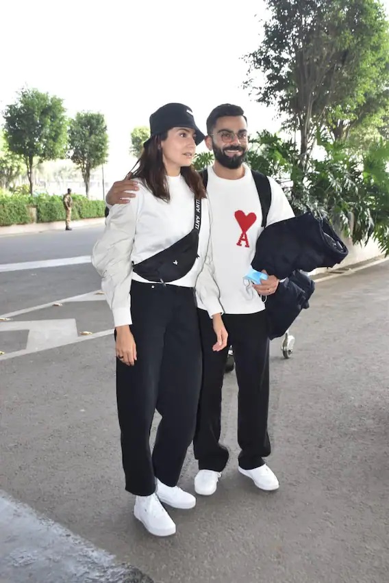 हमेशा चर्चा में रहने वाले कपल विराट और अनुष्का (Virat-Anushka) को बुधवार को मुंबई एयरपोर्ट पर देखा गया जहां दोनों वाइट कलर में ट्विनिंग करते नजर आए। दोनों कैजुअल लुक में एयरपोर्ट पहुंचे थे और मुस्कुराते हुए पैपाराजी के लिए पोज दिए। इस बीच, टीम इंडिया के पूर्व कप्तान के स्वेटर ने फैंस का ध्यान खींच लिया जिसपर उनकी पत्नी अनुष्का के नाम का पहला लेटर यानी ‘A’ लिखा था जो ऊपर बने दिल से जुड़ा हुआ था। फैंस इस हरकत को ‘क्यूट’ बता रहे हैं।