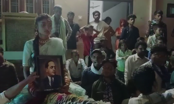 जहाजपुर डी वाई एसपी अजीत सिंह सहित चार थानों के जाप्ते में बिंदौली धूमधाम से निकाली गई. दूल्हे सुनील कुमार और दुल्हन चेना कुमारी ने घोड़ी में बैठने से पूर्व बाबा साहब भीमराव अंबेडकर की तस्वीर को माल्यार्पण कर संविधान की उद्देशिका पढ़कर घोड़ी पर सवार हुए. साथ ही अपने साथ बाबा साहब की तस्वीर लेके बैठे.